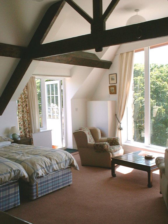 The Studio has a floor to ceiling picture window with views across to Guernsey. Sleeping 2/3 this exceptionally large suite has a spacious lounge area, en-suite bathroom, fully equipped kitchen, central heating. The Studio is reached by its own outdoor staricase, with private balcony for sunbathing, or admiring the view across to Guernsey. |